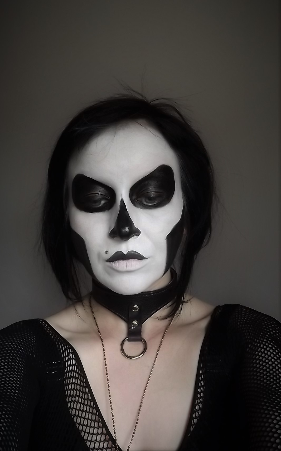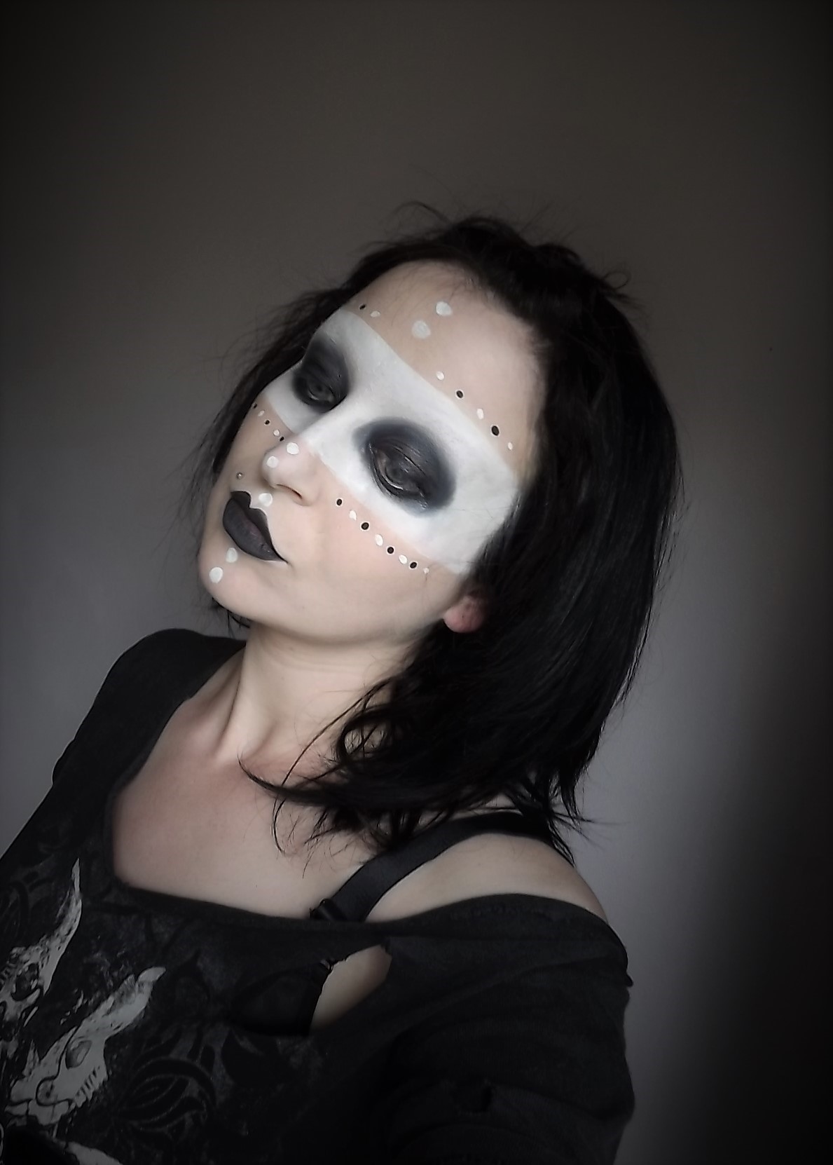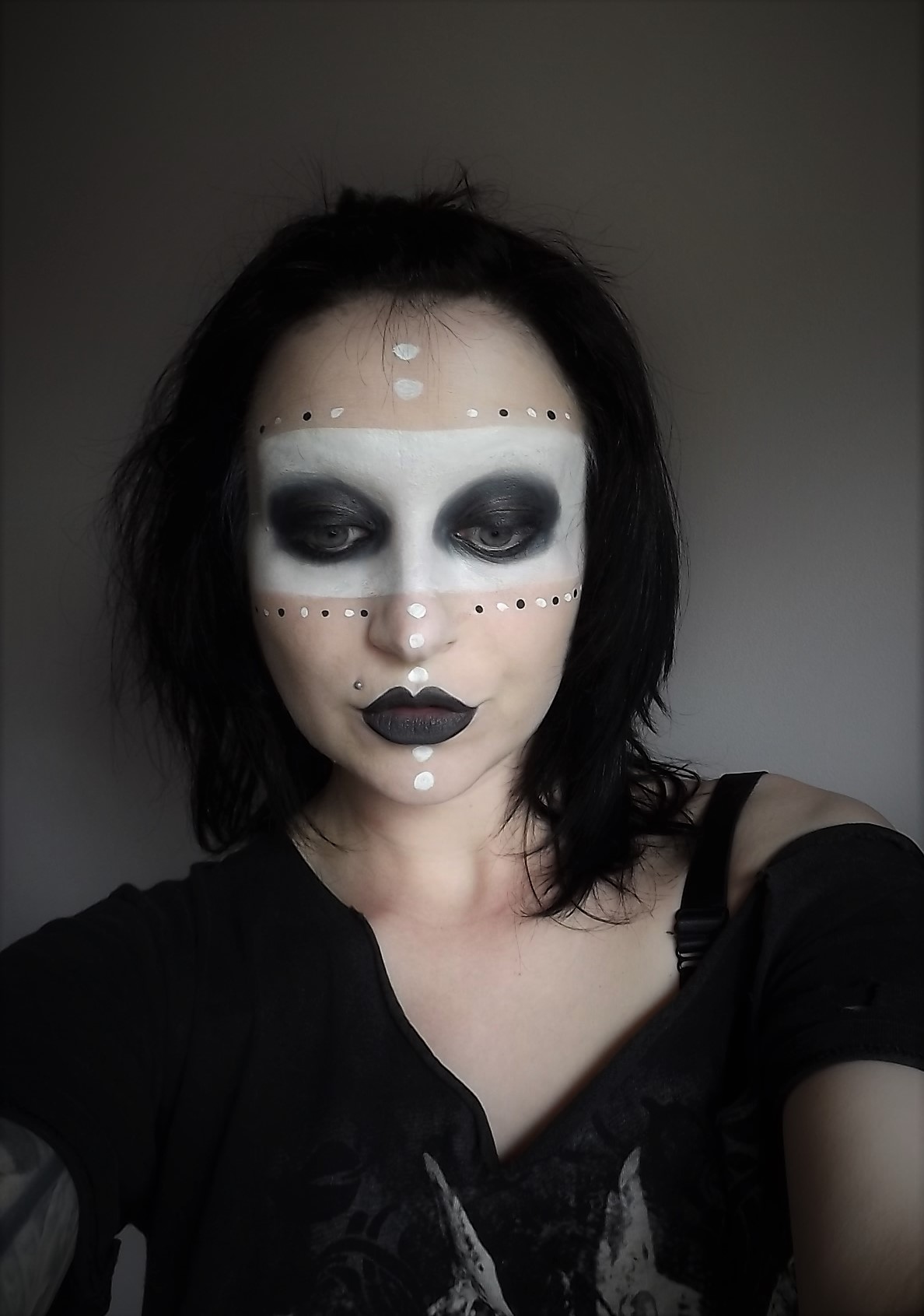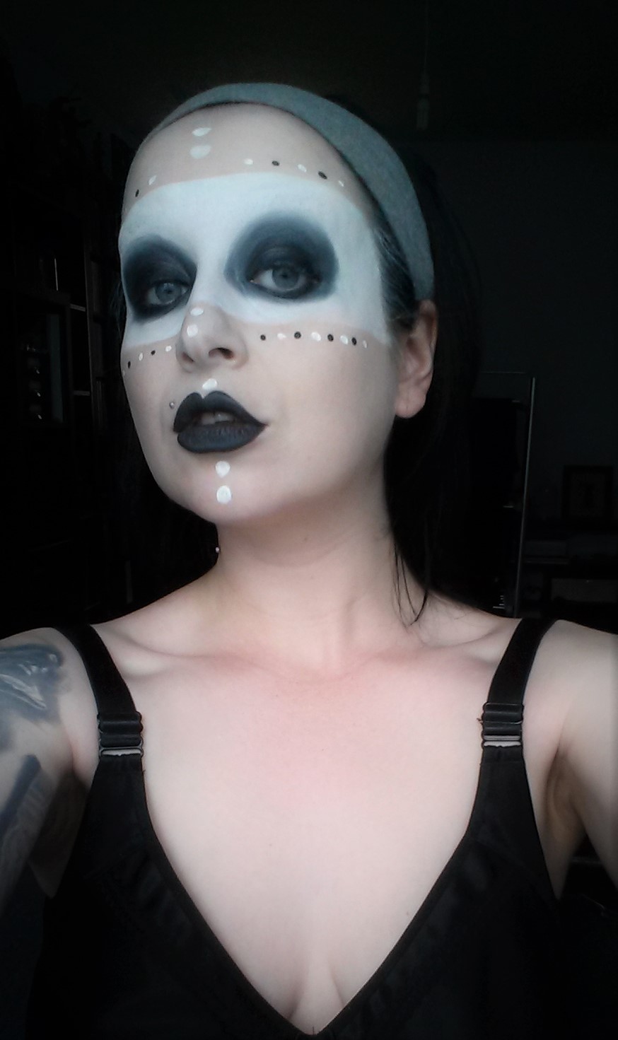 - The lips I just used a simple sharpened eyeliner pencil. Not all eyeliners are good for this but ones advertised as ‘smokey’ are! Otherwise use a pencil to outline your lips and fill in with black lipstick or face paint!