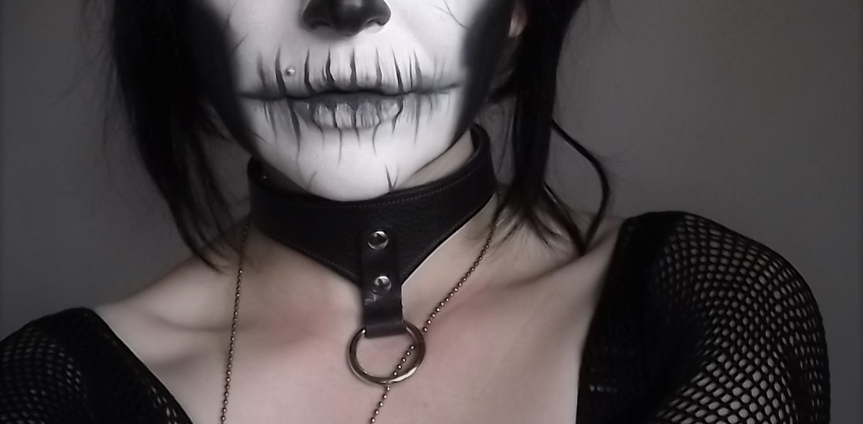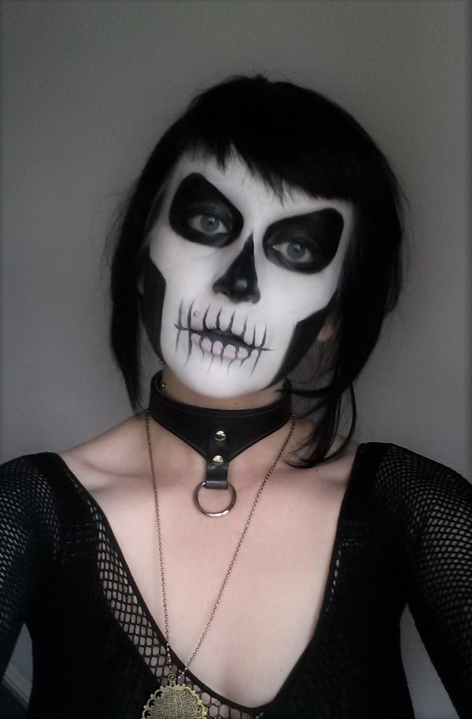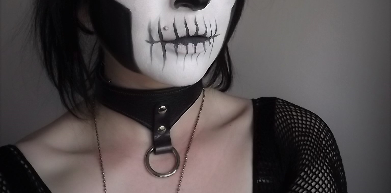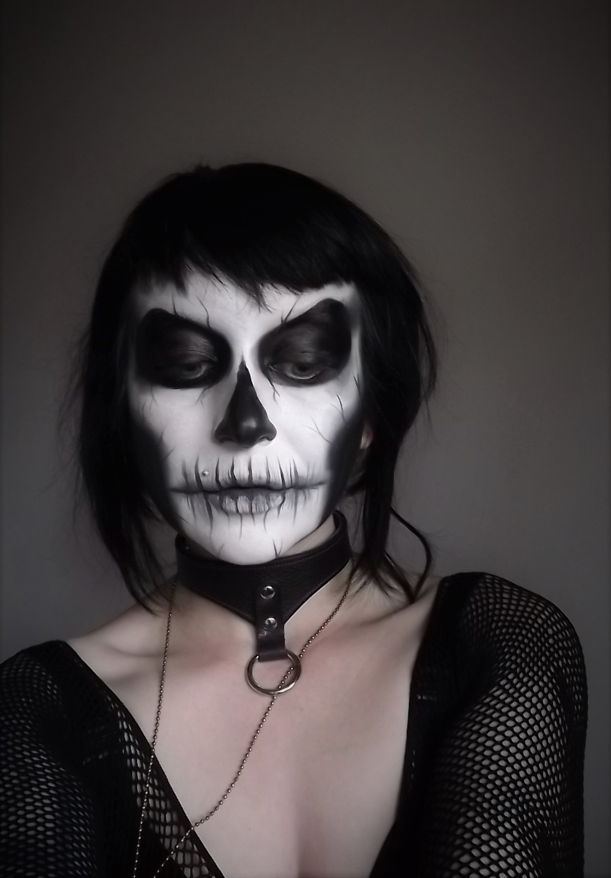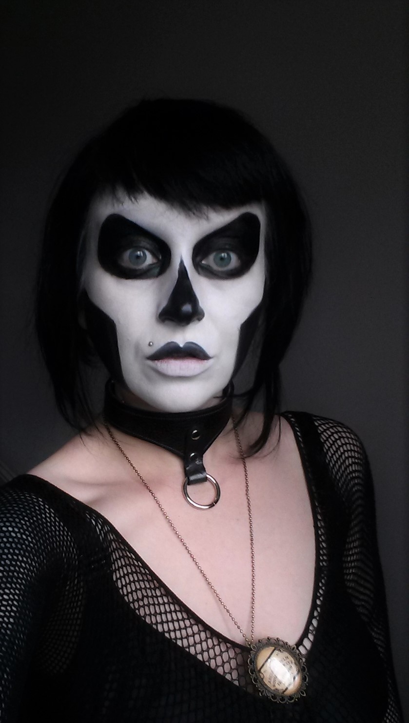 - The lips I just used a simple sharpened eyeliner pencil. Not all eyeliners are good for this but ones advertised as ‘smokey’ are! Otherwise use a pencil to outline your lips and fill in with black lipstick or face paint!
