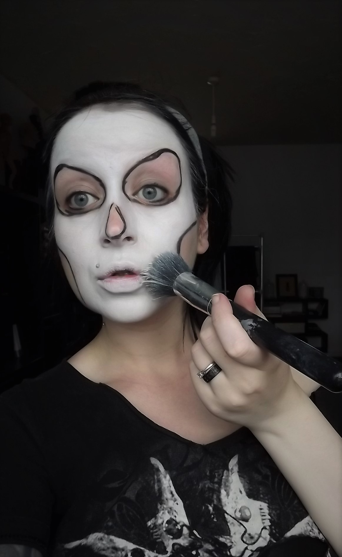 - Next fill in the white part using a sponge or brush, and then buffer out the lines using a setting powder and brush. It is best to do the white first as you can always neaten it using the black (whereas the other way round can be messy).