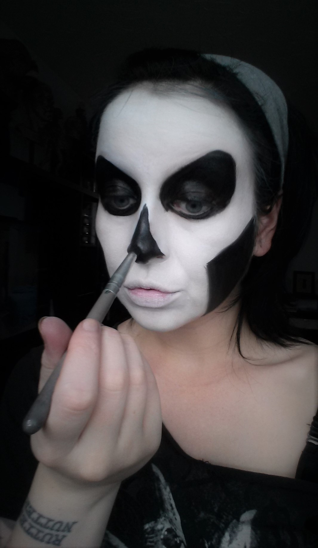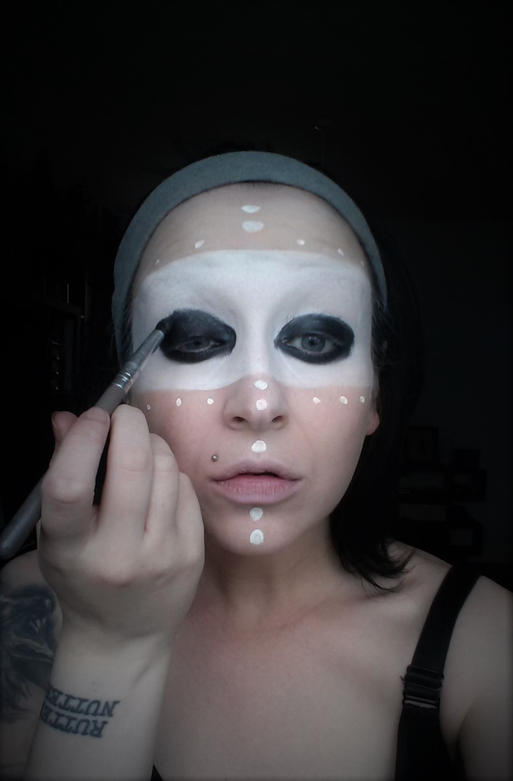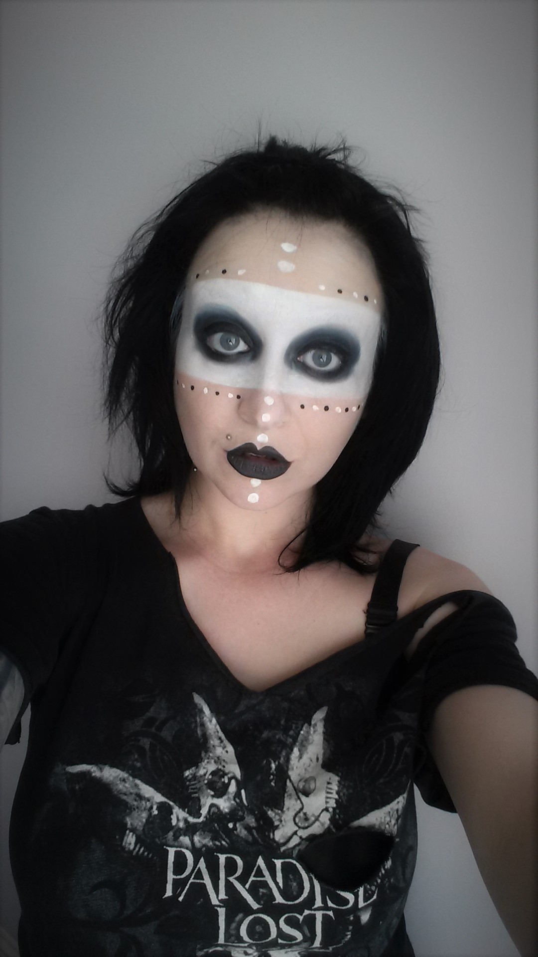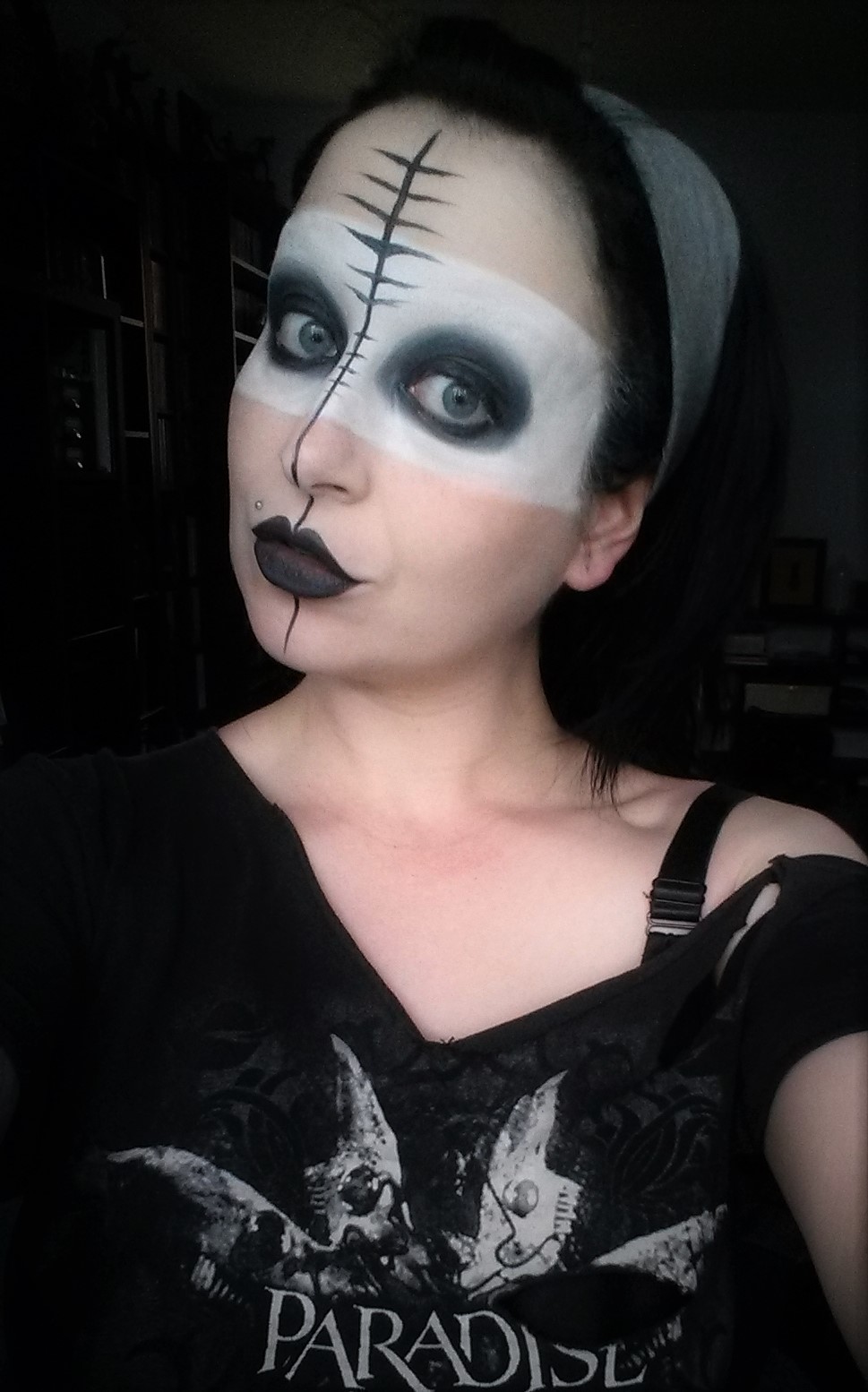 - To get the dark smokey eye look, I used a little black face paint and blended out using black eyeshadow and eyeshadow brush (once the paint had dried a little). Try to blend the edges rather than the whole thing as it can end up a big mess!