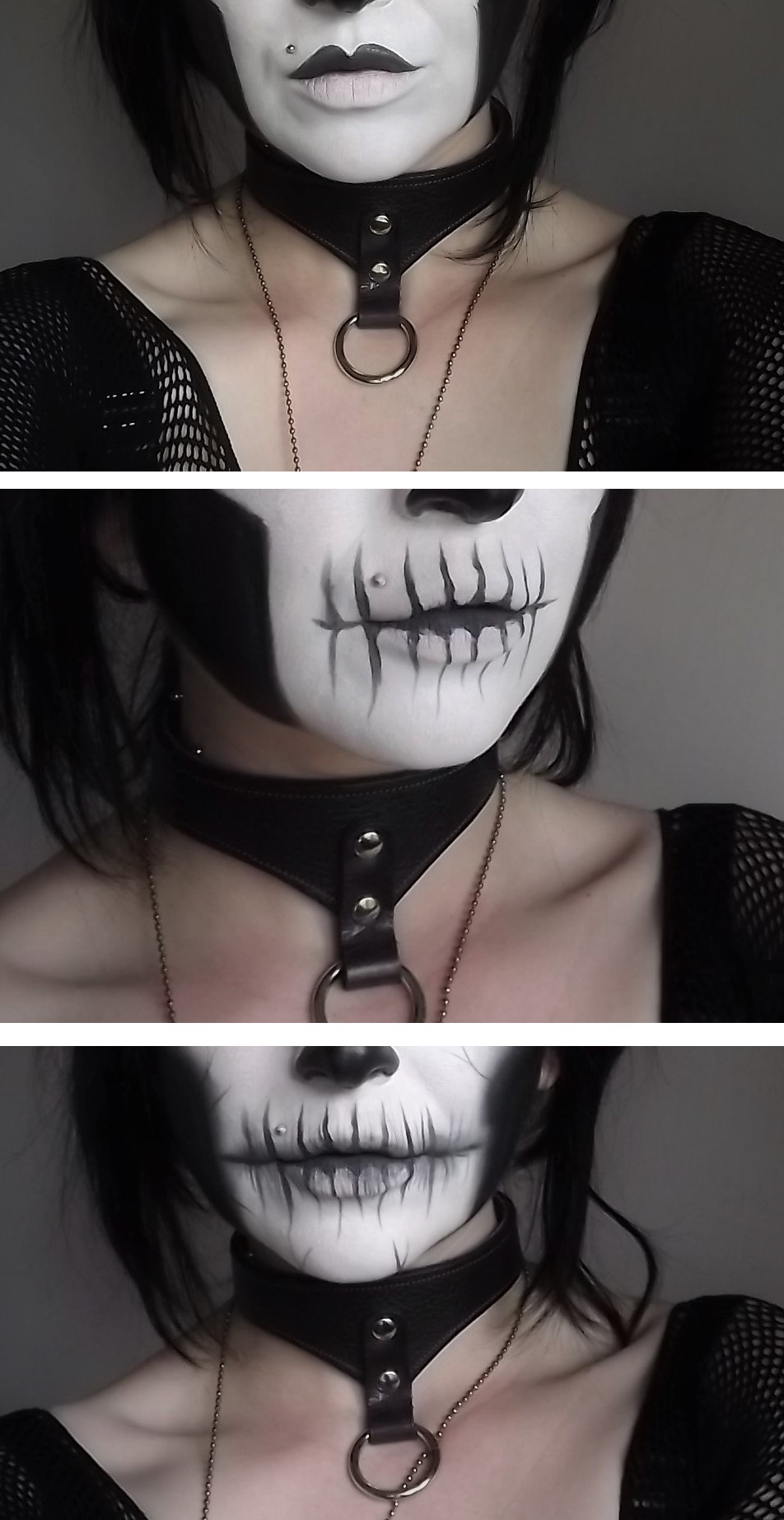 - The second variation is simply a more skeletal lip. This variation is easy enough; just use a liquid eyeliner to draw or black paint with a thin brush.
