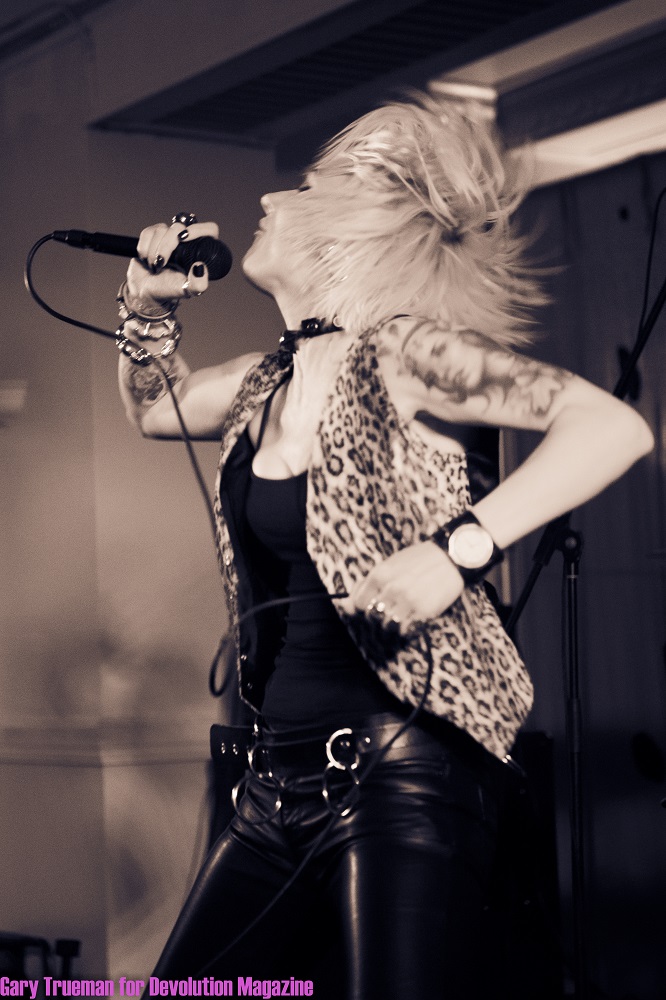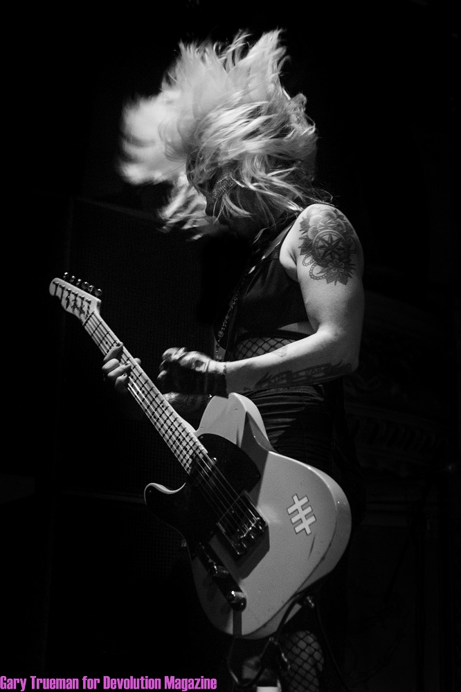 The little introducing venue is full to capacity for Kelly Chelston and her band mates, so much so you have to wonder if it was a good idea putting them on this stage. It’s testament to their pulling power that it seems every photographer in the building has made a bee line to capture Tiger Sex in motion. No one whether they have a camera or not is disappointed. The band remind you a little of White Stripes with drums and guitar having no bass accompaniment. The real difference is that this is a trio with Chelston a free agent to run amok at will, and run amok she does. In the crowd, on the speaker stacks and occasionally actually on the stage her diminutive lingerie clad frame is a non-stop bundle of energy. The music, a mighty blend of garage punk meets the New York Dolls is played with pace and skill. Some bands come to play, Tiger Sex put on a show, and it’s a show that brings the house down.