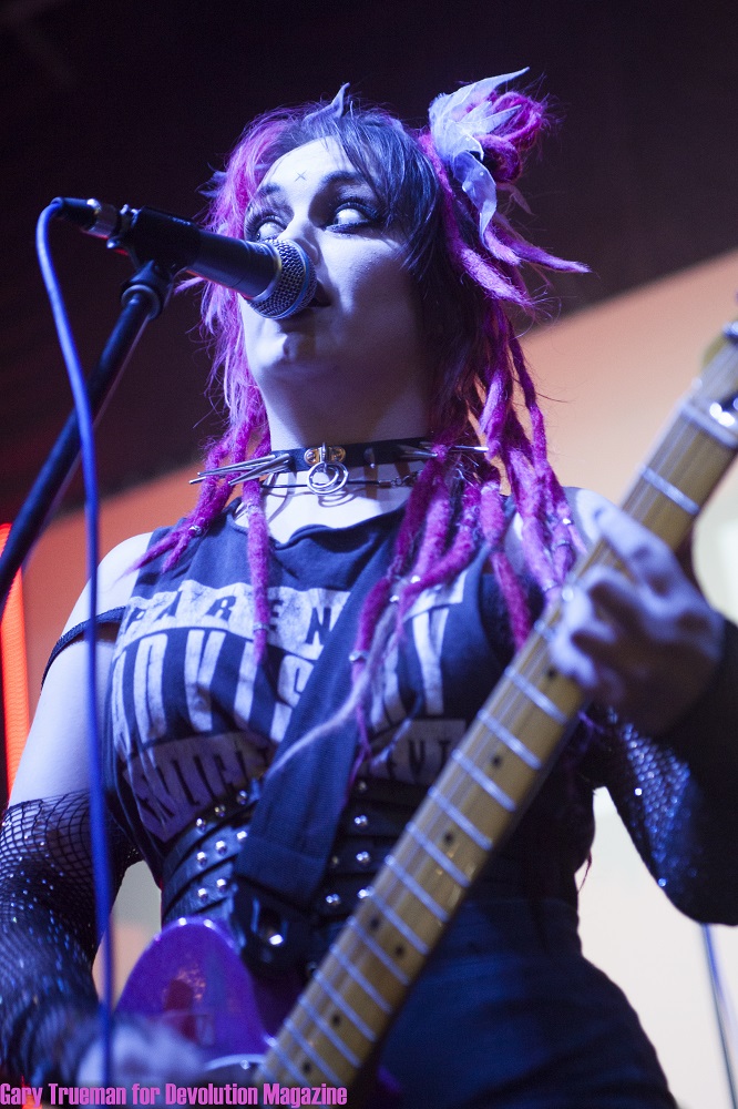 Playing the introducing stage during the black hole of time known as 5.45pm when many are thinking about food might have seen some bands become deflated before they’d even started. Chaos 8 however are from the north east, Sunderland to be precise so it’s no surprise they turn up with their A game very much in play. What is an eyebrow raiser for the uninitiated is just how special they are. Beki Straughan comes across as a slightly twisted version of Debbie Harry while the music is straight from the Killing Joke text book. The result is one of the most memorable acts of the weekend. Dark brooding synth, crushing riffs and menacing vocals all combine to give Chaos 8 a sound that is unique but eerily familiar. It’s a sound that could take them a very long way.