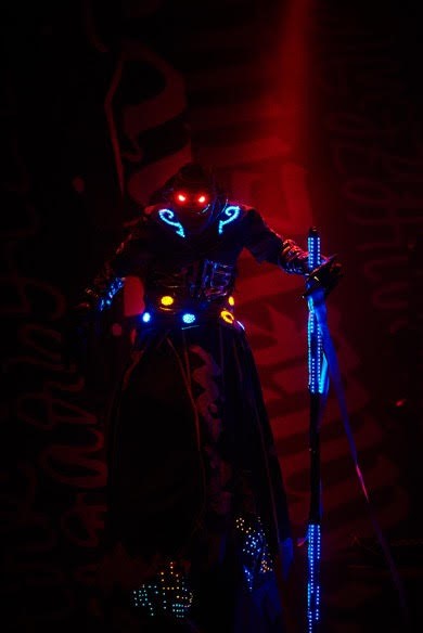 “I’ve had a lot of band formations under Juno Reactor and lately we’ve been doing this thing called Juno Reactor And The Mutant Theatre which is a sort of science fiction Las Vegas show. It’s sort of like a theatre but it’s more performance and dance. I met these Russian performers called Agnevo in Moscow and another lot called the Stigma Show in St Petersberg, and we were asked by a festival to bring something new. So I put this idea of the Mutant Theatre Show together. That’s been my baby over the last year. We’ve spent a year developing this costume that has over 3000 LED lights on it and it’s wi-fi controlled and can be programmed so the lights can provide any shape you want. The guy who designed it is part of the Stigma Show. It’s the first time I’ve ever written a piece of music for a costume.”