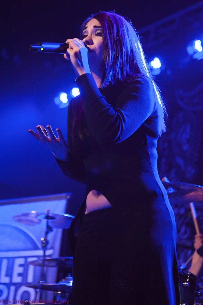 Opening are Skarlett Riot, demonstrating their new heavier sound. Considering you’d assume most of the audience had gathered for Santa Cruz, the crowd that quickly developed at the front of the stage was highly impressive and a sign of how much more popular the band will surely become once this tour is over. Skarlett Riot’s performance is nothing short of incredible with Skarlett using her excellent stage presence and strong, clean vocals to excite the audience into a frenzy. The brief conversations she had with the crowd as a whole helps bring the set together in a relaxed, interactive way. It seems as though Skarlett Riot have finally settled into their skin, and are enjoying their new sound just as much as their fans.