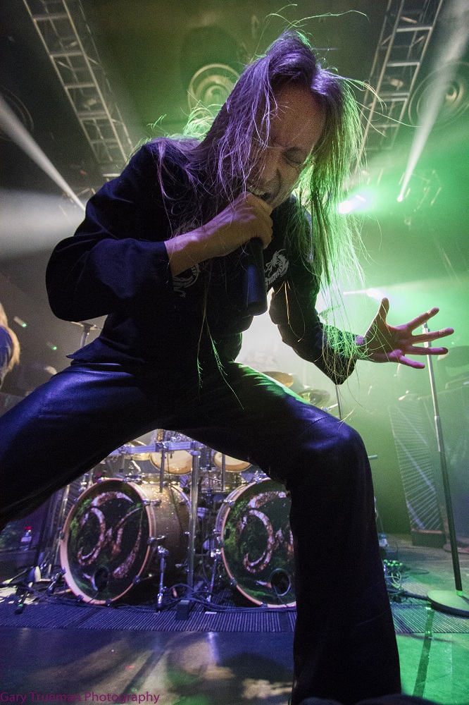 Normally the first band on play to a few fans and the inquisitive while the bulk of ticket holders finish a pint or a meal before heading to a show. Sweden’s Tribulation play to a very nearly full house. Testimony to the strength of the line up tonight and possibly the nature of the audience members. The band are a curious mix of black metal visuals and doom tempo at times but their heart is death metal and they play their music with panache. No one could ever acuse Tribulation of at least making sure they put on a show.