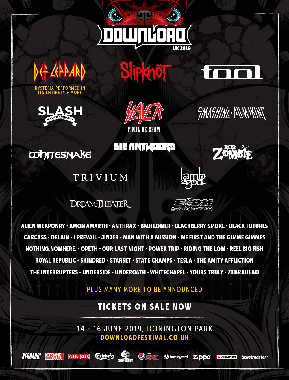 Download Festival, has announced a further 23 acts including Slayer with their last ever UK show, The Smashing Pumpkins, Dream Theater, Lamb of God, Eagles Of Death Metal, and more.