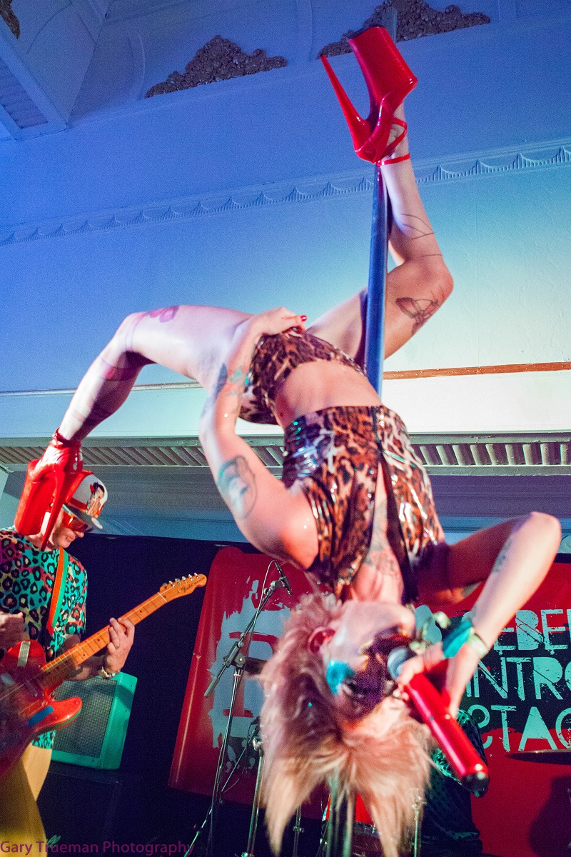 It’s a brave move to combine an already new sound with pole dancing. There are very obvious pitfalls, the accusations of gimmickry and that it’s all a diversion to hide musical flaws. The rub here is that the music is full on fresh, a blast of arctic air into the stuffy old halls of punk rock. Dolly Daggerz has a quite astonishing voice too, holding on to notes that would see mere mortals turn blue and fall. The music itself is a kind of mash up of grunge, pop, punk and heaven forbid lap top samples. Far from being a gimmick the pole is just an extension of how the band, and in particular Dolly express themselves. The great thing is that the women in the audience love it more than the guys. There are gasps when Dolly has the mic and is upside down in her pleasers. Tokyo Taboo are pure entertainment. A recall for 2020 is surely a must.