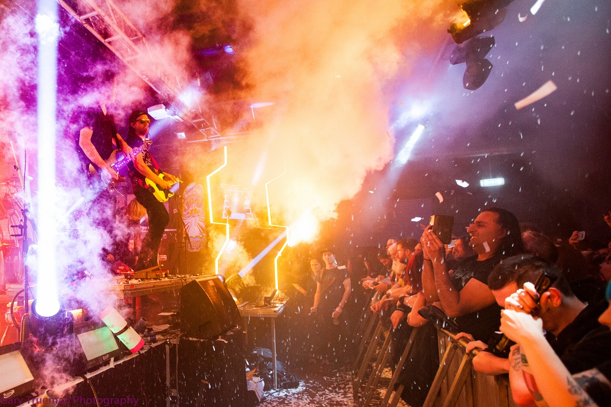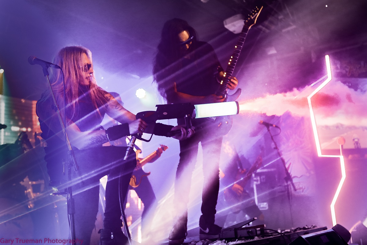 When you get a laser show and giant arcade games ushering in a headliner it gets you ready for something special. Quite often with acts they flatter to deceive, but not Dragonforce, they actually make the pyro confetti intro look somehow normal. It’s a typically well polished show at the Roadmender. It’s a packed crowd willing Herman Li and Sam Totman on to ever escalating guitar insanity while Marc Hudson is busy conducting the show and using a pyro/dry ice gun on the fans. Dragondforce never blow hot and then cold, they always deliver a great show and tonight is no exception. We’re treated to some of those little special moments too, like the supports joining the band for a kind of power metal hoedown featuring a banjo of all things. There’s a big nod towards Skyrim with ‘Last Of The Dragonborn’ and a finale that includes a wonderfully rocked up version of Celine Dion’s ‘My Heart Will Go On’. We may be entering the first flourishes of winter but Dragonforce have turned up the heat here in Northampton, showing just why they are so well regarded. They depart as they arrived, in a flurry of chaos, smoke and chanting happy fans.