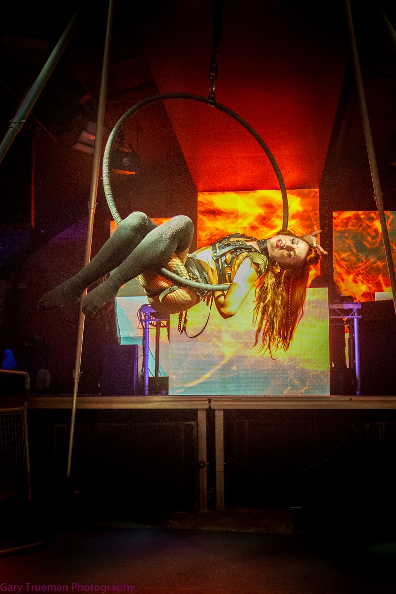 Naomi Wood kicked off proceedings in the Theatre Of Sin hosted by Virgin X, her elegant aerial performance being greeted enthusiastically by a keen crowd. Hayley Leggs dazzled with a delicious catwoman themed burlesque show featuring a fire finale. Beatrix Carlotta and Naomi Wood then brought out the candles in a visually stunning act which appropriately had the concept of death and resurrection. It fitted AC perfectly. It could only be Professor Elemental to round off this ‘we’re back’ evening. His upbeat ‘chap hop’ never ceases to bring smiles wherever he plays.