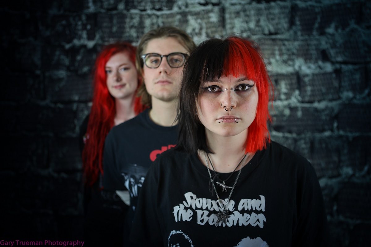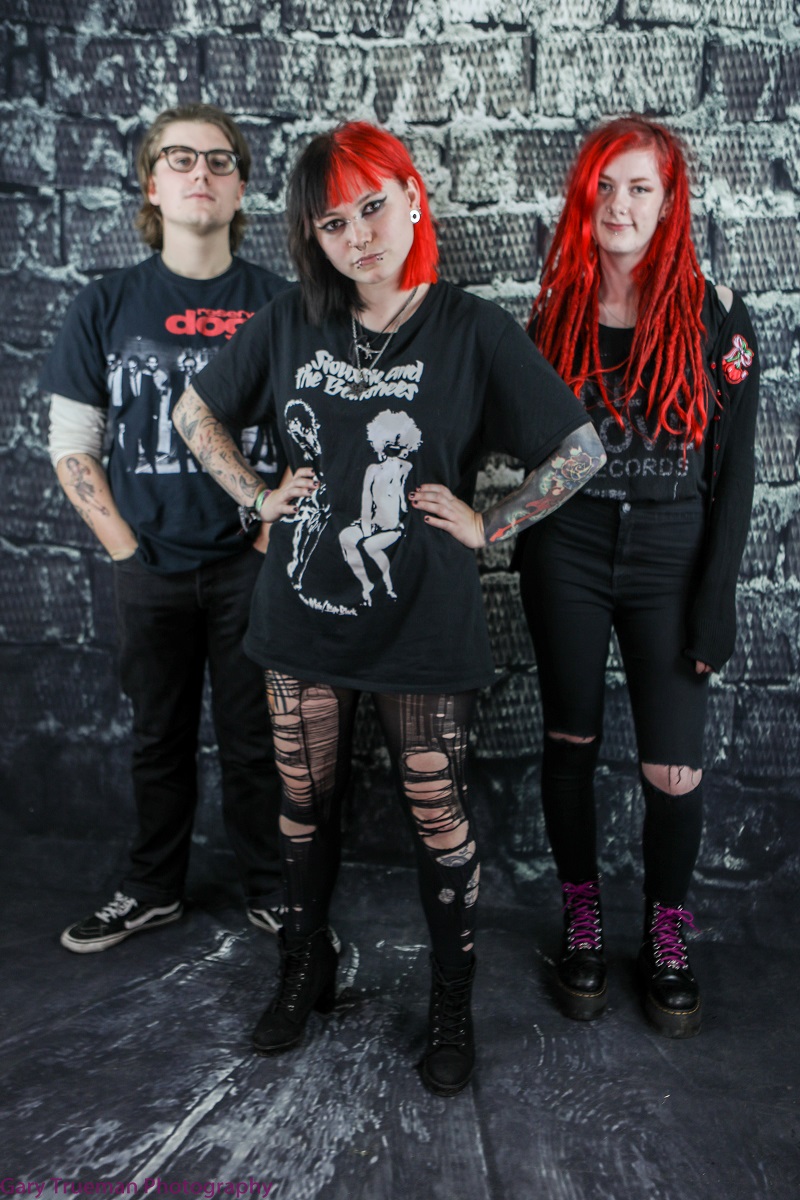 “Hex Poseur is kind of my alter ego, a thing I created about two years ago when I used to live in Cornwall. Then I moved back to Leicester and wanted to finda band. I found Emily on Facebook. Jacob’s friend responded to a drummer advert for Jacob. He was in a cast as he’d broken his arm. It was during Covid lockdown so I couldn’t audition in person. I had songs written so I sent them to him and he sent me a clip of him playing. He was playing with his cast on.”