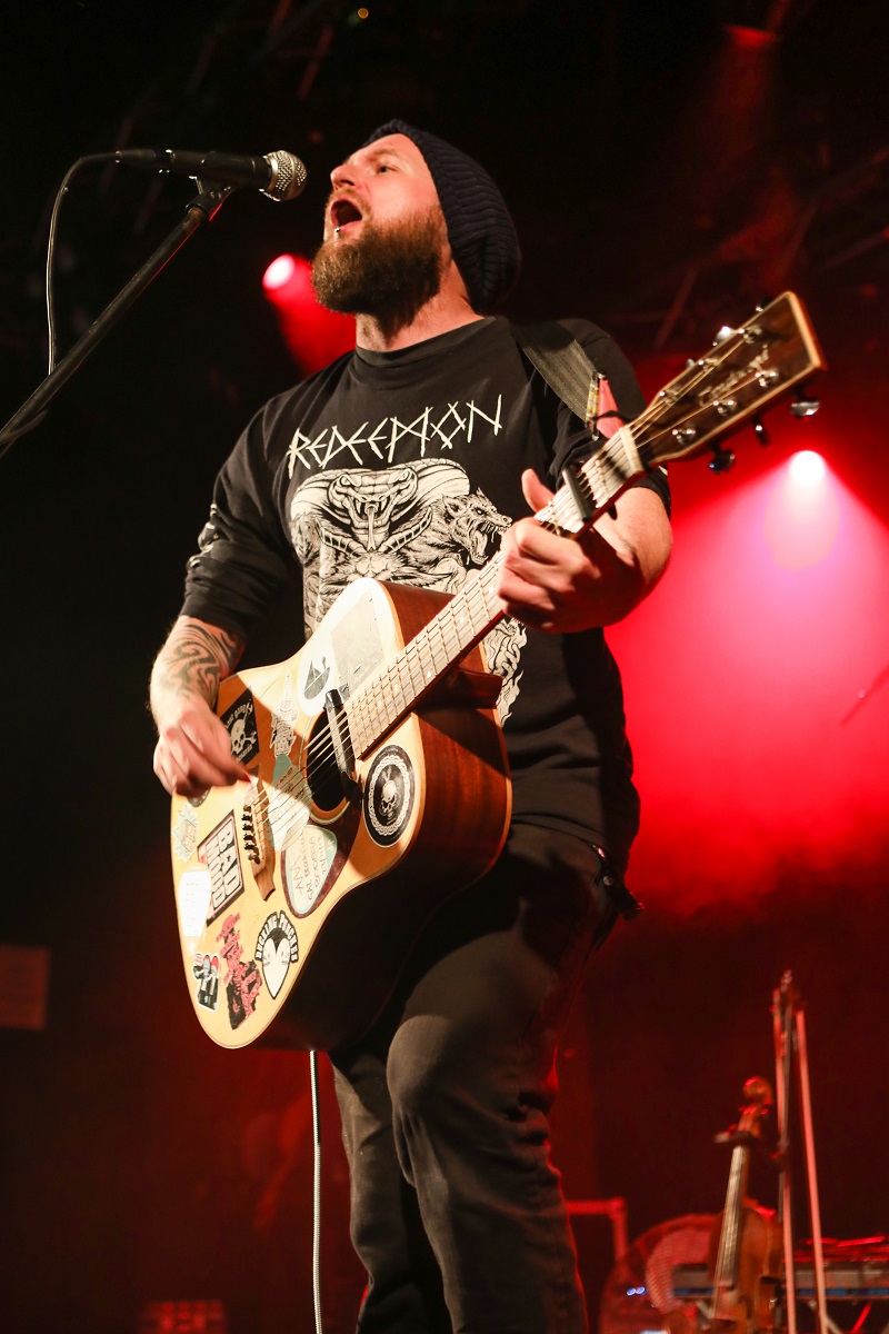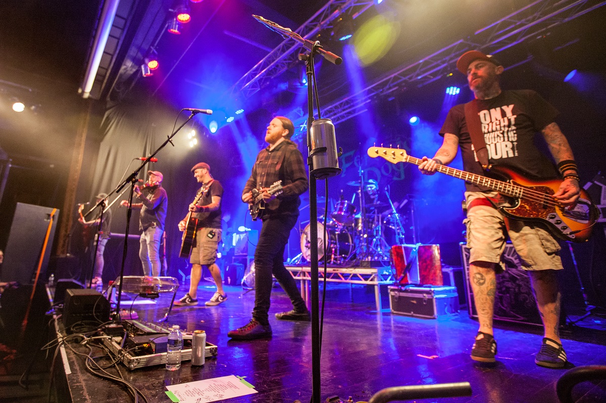 It’s a credit to everyone that the Picturedrome is rammed full given the storm that’s just raged through the UK. There’s a good layer of snow on the hills (and roads) of West Yorkshire. Ferocious Dog fans are made of stern stuff though and they’re eager for the show. Jake Martin takes to the stage with an affable demeanour. His folk punk acoustic set is notable for the quieter moments which add depth to the angsty assault. The lyrics are part angry spoken and part sung, a very modern delivery for a traditional act. It works well allowing Martin to keep the flow of his performance engaging.
