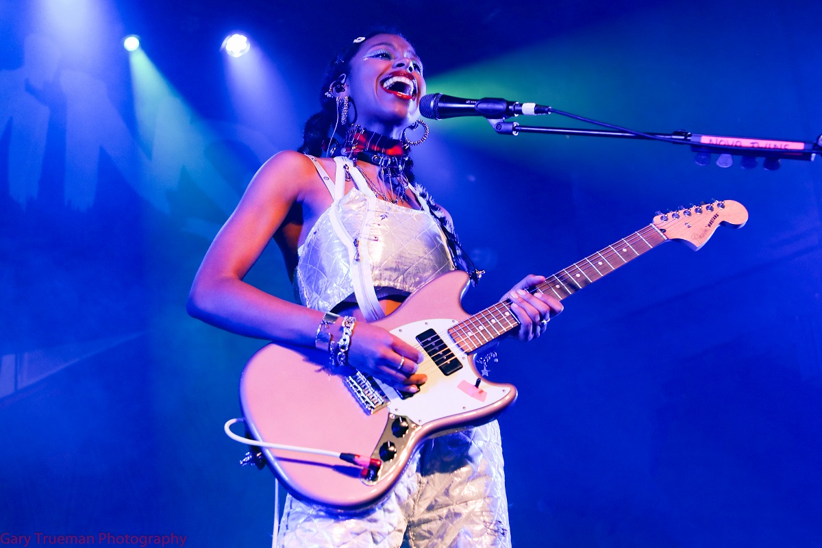 They’d only just flown in from Derry for this show but Cherym play a blinder opening for the Nova Twins. Sweet melodies are given clout thanks to some neat guitar licks and dynamic bass work. Drums are centre stage and forward which is great to see. They sound huge too, carving are the frame on which hangs some finely penned songs. This is how music should be, and how a support act should be treated. The trio play their hearts out with big smiles all around and the Rescue Rooms is near full already cheering them on. Three girls from Ireland just won a lot more fans. They deserve every one of them.