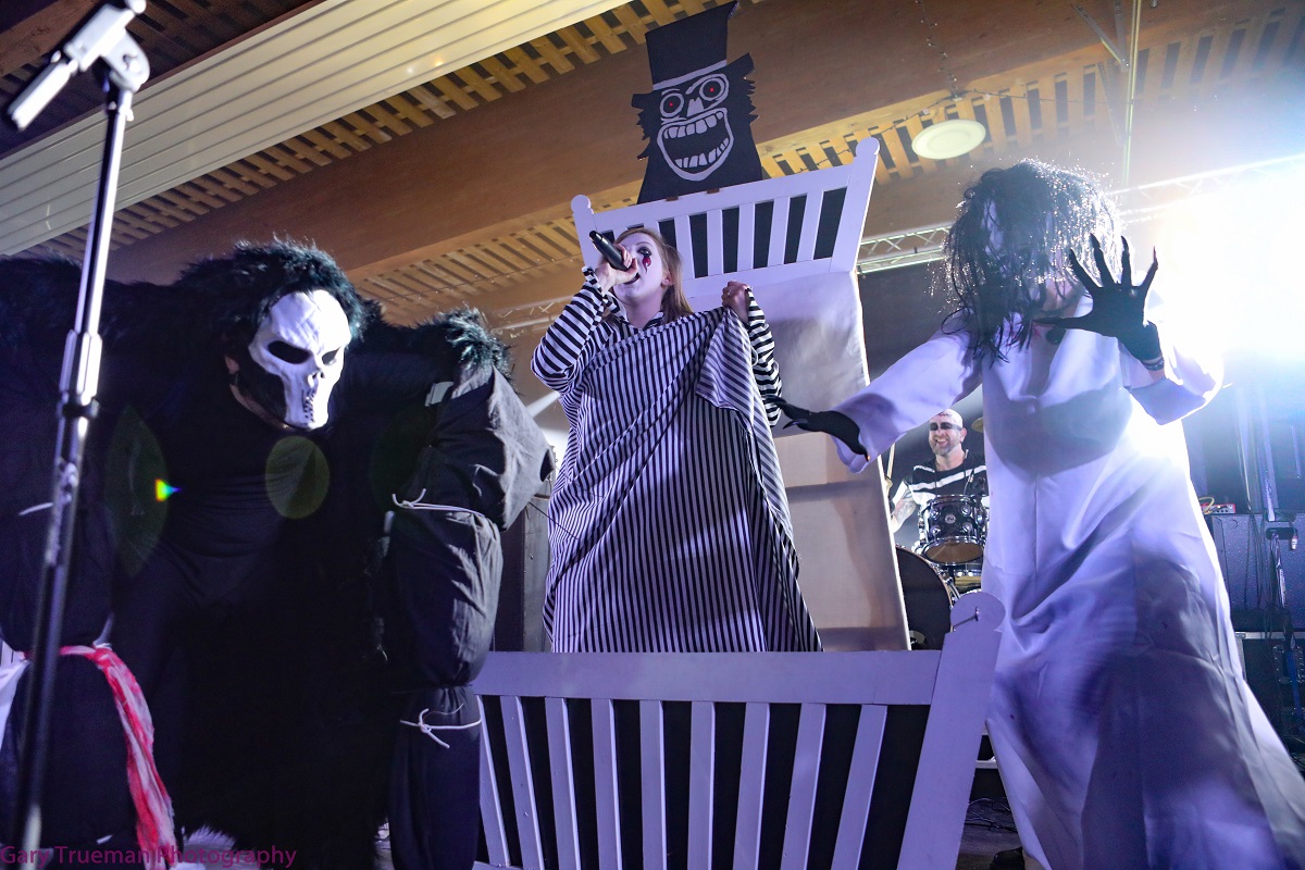 And speaking of storms, that’s what melodic metallers Skarlett Riot bring to the table. Clean melodies mesh with pounding rhythms in a finely tuned machine. New songs sit well but it’s old favourite ‘Warrior’ that still steals the show. Like theatre? Like a bit of horror in a cartoonish child friendly way? Ward XVI are the band for you then. They bring (almost) all of their wondrous stage props to the Epic Centre. There are inflatable chainsaws, ghouls, ghasts and even a toy box with a little marionette girl inside of it. Importantly the music meets the high standard the imagery wants you to have it deliver. Slick guitars and strong writing are enhanced by a well pitched vox. The asylum isn’t that scary – honest!