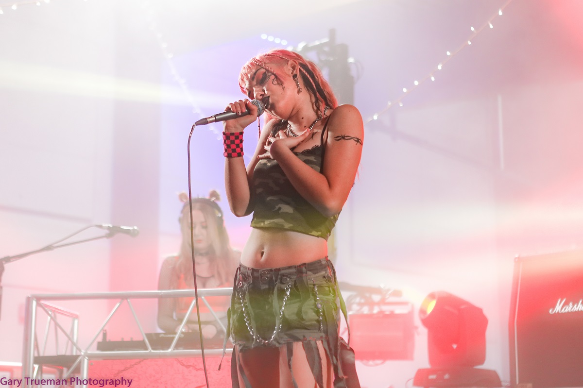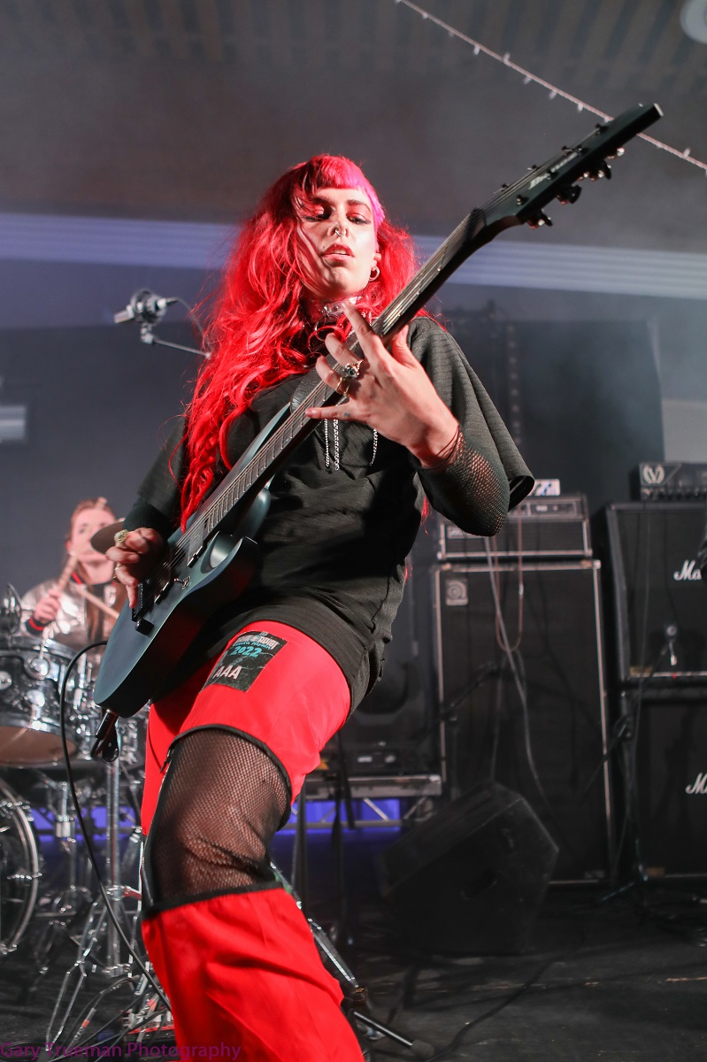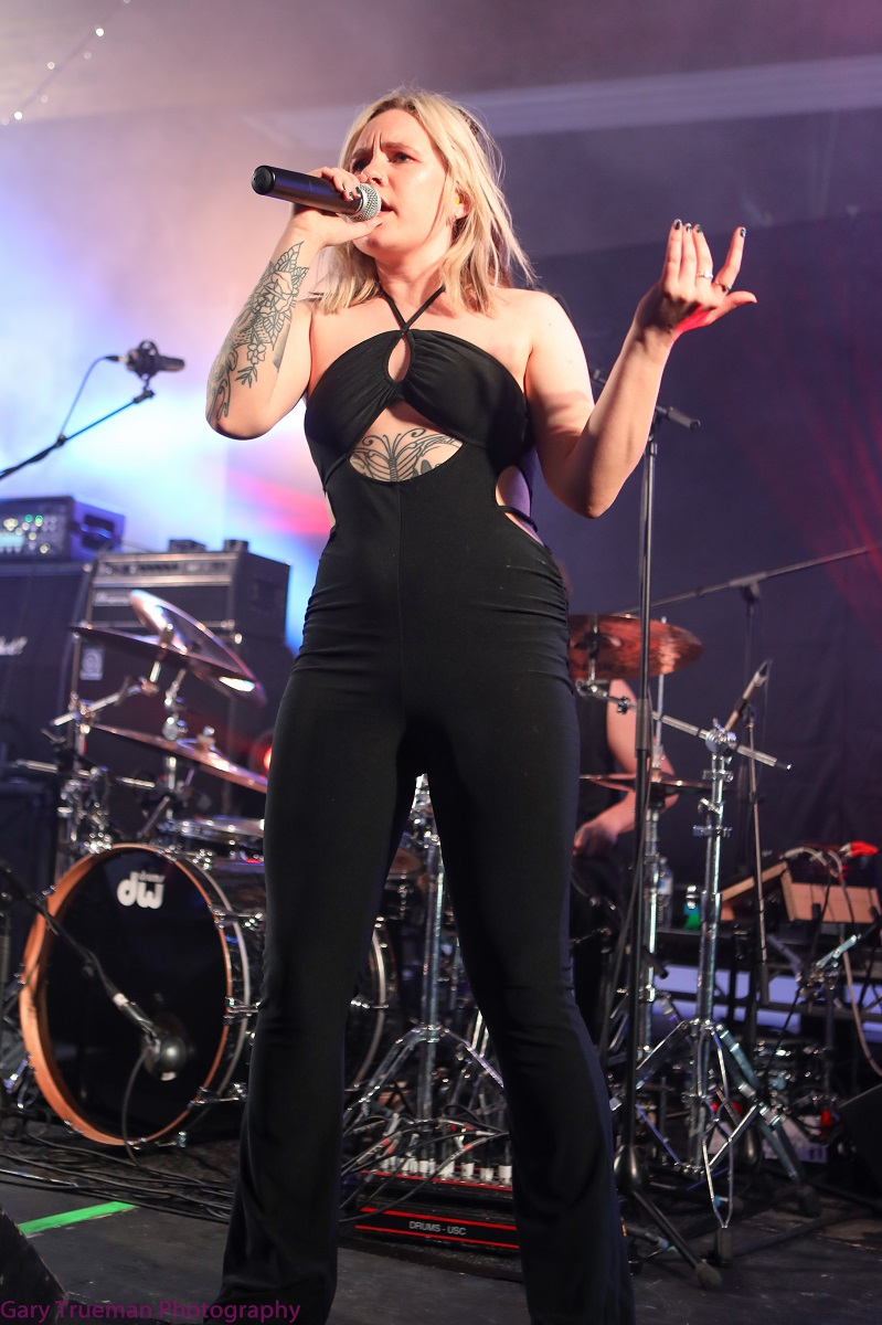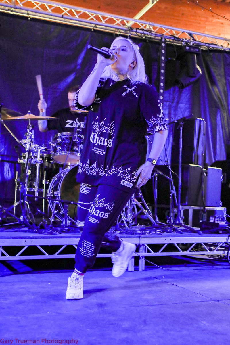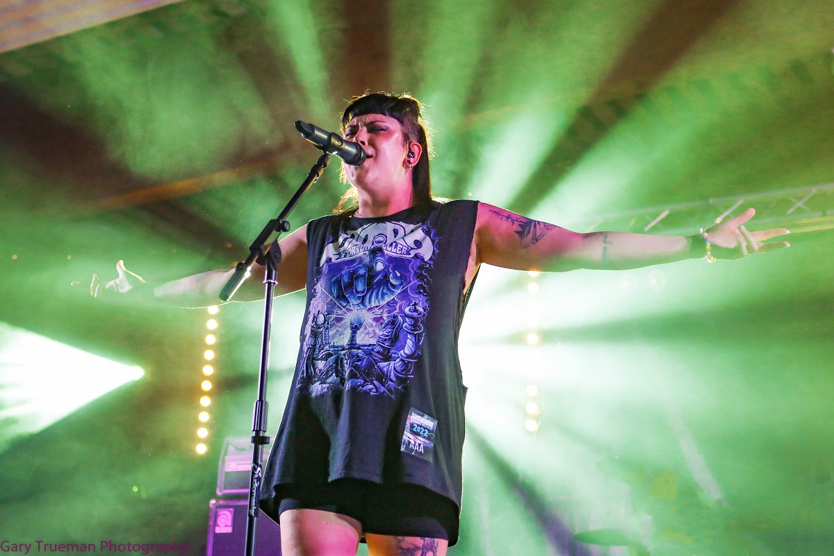 Take Millie Manders And The Shutup for instance. They’re closing the (marginally) smaller Primordial Presents stage on this opening night and they own that lofty position. The ska punks have such a diverse repertoire that you’re hooked from the first intro until the last note fades away. ‘Bitter’ booms loudly, a pleaser for all the rock fans. ‘Glitter Mix’ has you reaching for the hankies, a ballad of stunning depth. And those punk roots are well represented with the uplifting ‘Not Ok’ and anthemic ‘Your Story’. The music is played with panache while Millie’s voice is simply world class. This is a band very much on the up.