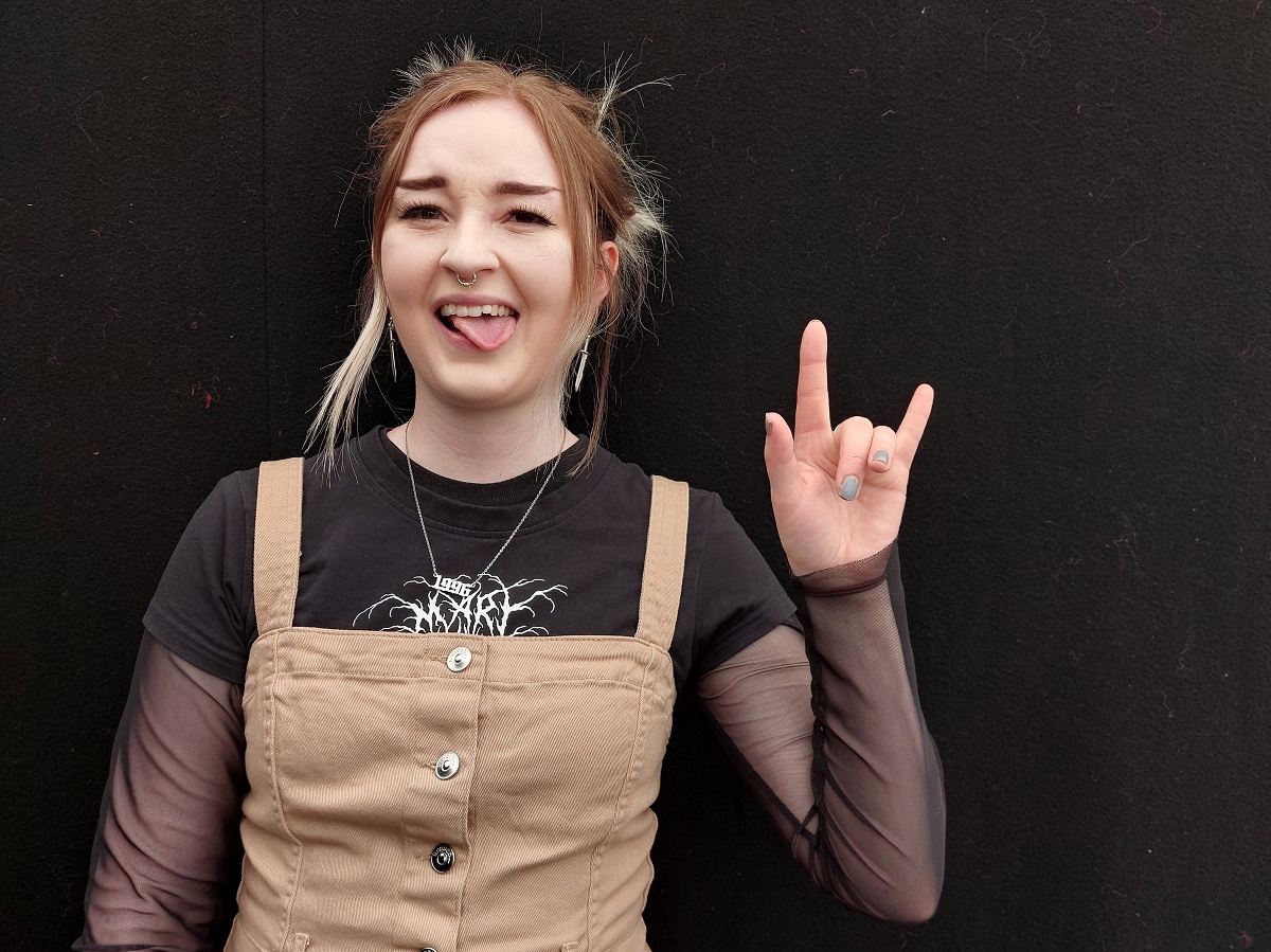 “I started listening to Flyleaf and thought it was cool and I thought how does she (Lacey Sturm) do that? I started finding heavier bands with female vocalists. I watched a lot of YouTube videos and then just did it. Don’t get me wrong, it sounds absolute rubbish when you start doing it but you just have to keep practicing. I’m still not all the way there yet but I’m more a singer than I am a screamer.”