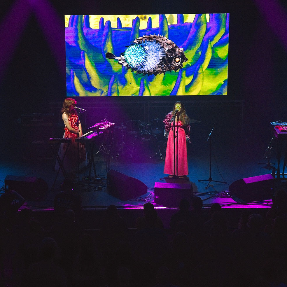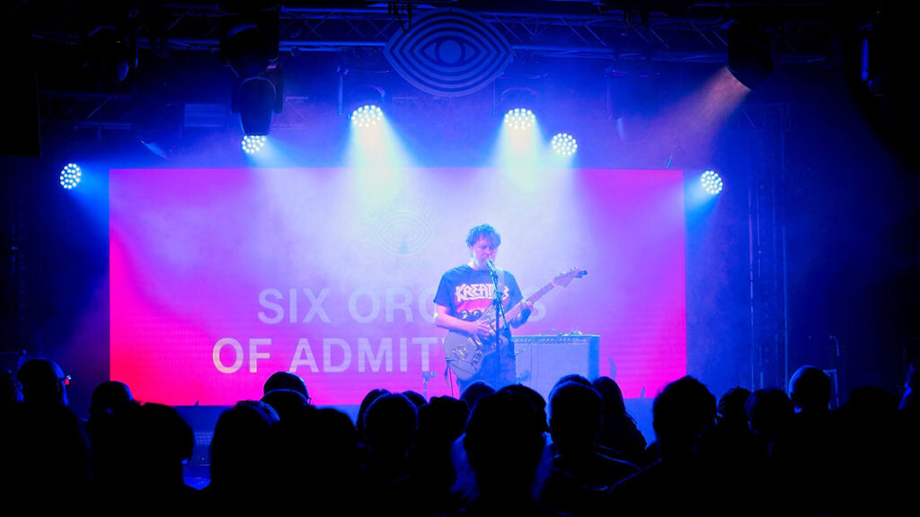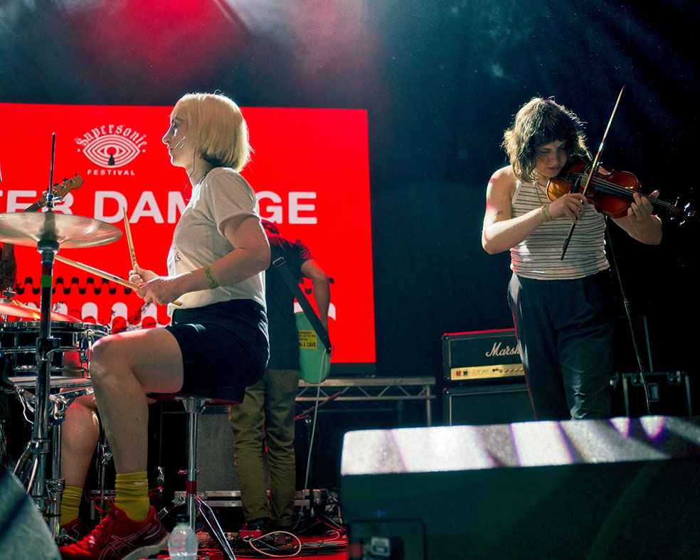 From here, we travel up the road to the Institute for a frankly startling experimental pop hyper colour of Mermaid Chunky, who feel for all the world like a Mighty Boosh club band come to life. It’s a performance in every sense of the word, replete with playful songs about trousers, visuals of hedgehogs and a multi coloured dance troop in the crowd. To say it’s an otherworldly experience early on would be unusual anywhere else but here, and in the spirit of Supersonic Festival, it’s our first reminder that we should strap in and enjoy the ride of the next three days because who knows where this is going next.