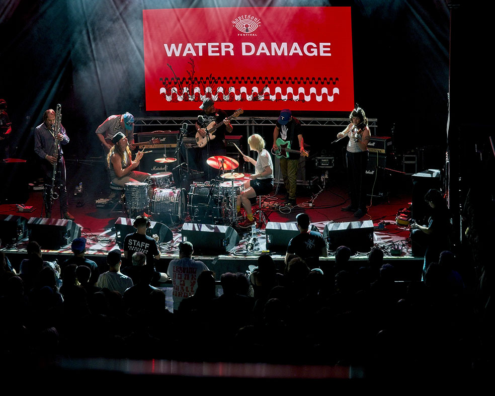 This is where the swerves and shifts of this Festival come into full effect, because over at The O2 Institute’s main stage, immersive drone supergroup Water Damage could not be a more contrasting act. Their set revolves around a single, evolving, undulating drone piece, with two drummers playing the same pummeling rhythm. It is equally hypnotic and confrontational, with the sharp urgency of the rhythm section allowing the many pieces of this ensemble room to drift and explore the space above. When you look at the calibre on stage from bands like Swans, Spray Paint and Black Eyes, it truly is a masterclass in how to do a truly immersive performance, and they are not the only performance of this type we will encounter over the weekend, but surely the most deliberate and visceral.