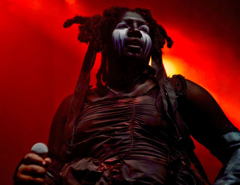 Tonight’s main event for us is the return of Backxwash to Supersonic. This year’s incredible Only Dust Remains opus was not only a switch in style away from her metal leanings, but it was also a testament to how you can be truly heavy in so many other ways. Tonight, she plays that album in full, and it’s glorious to watch. She performs her set alone, with no DJ or hypeman, just her and a microphone in front of well-placed visuals, wearing her full regalia. From the first note, the entire audience is within the palm of her hand, her crushing vulnerability front and centre as she tackles tales of drug use, suicidal ideation and a rallying cry for Palestine on History Of Violence with her lyrics in bold behind her. This performance is true, it is real, and it is delivered by a woman who, for our money, is the absolute best in the game right now. After the last note, she leaves the stage and people start milling out, when she returns for a blistering mosh pit rousing encore of the aptly titled ‘Devil In A Moshpit’. The queen returned to take her crown and left every jaw on the ground in the process, untouchable!