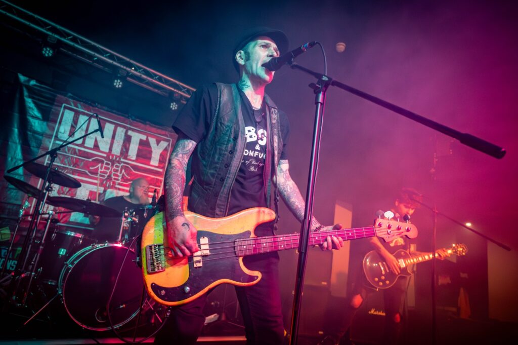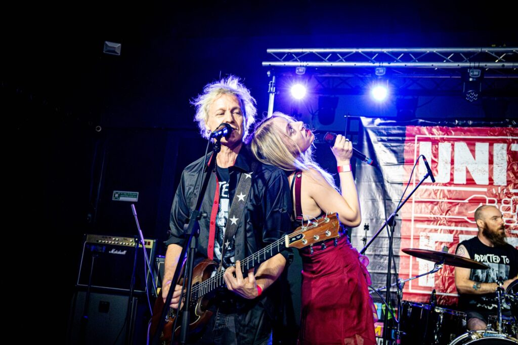 Gestalt have some issues at the start which mean they have to borrow a bass guitar from Healthy Junkies, they eventually get it all sorted and put on a great set of old school punk rock. Healthy Junkies do what they do best, pure rock and roll with plenty of French sass from Nina and Phil hamming it up for the crowd. Nina even comes into the crowd to help liven things up. Family Of Noise are a two piece, instrumental noise combo. Just bass and guitar with a backing track of drums. It’s experimental punk that seems to go down quite well. Guitar Gangsters are back to classic punk rock and roll with a pair of guitarists. They’ve borrowed a drummer for the night but you wouldn’t have guessed it, they sound great. Yur Mum show you don’t need every instrument in the shop to make music. It’s just bass guitar and drum and still sounds great, even after having to swap out part of the guitar pedals. It’s an energetic show. It’s almost the end of the night and it’s time for Danny Wildheart and the UK Reprobates. There’s a few new songs off their latest EP as well as plenty of old classics, including the Wildheart’s song Anthem. Great rock and roll from the Geordie’s new band. Last up and it’s XSLF from Belfast. Don’t be confused by the acronym though, it means exactly what it says as it’s ex-Stiff Little Fingers formed by original band member Henry Cluney. It’s back to the beginning of punk, with some of the biggest classic punk songs from 1977 and beyond.