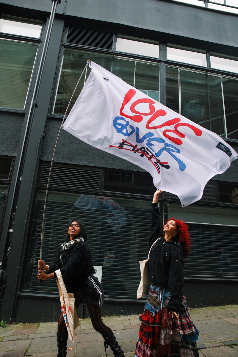 For the UK leg of their tour, Nova Twins are working closely with Amnesty International UK on a bespoke fundraising and awareness partnership. They will be selling limited edition tote bags, badges, and prints featuring a bespoke poem written by Nova Twins, spreading the important message of Love Over Hate.