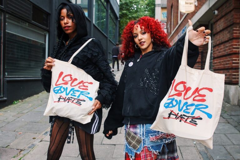 For the UK leg of their tour, Nova Twins are working closely with Amnesty International UK on a bespoke fundraising and awareness partnership. They will be selling limited edition tote bags, badges, and prints featuring a bespoke poem written by Nova Twins, spreading the important message of Love Over Hate.