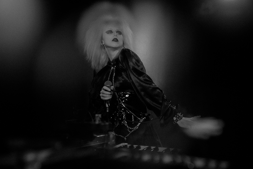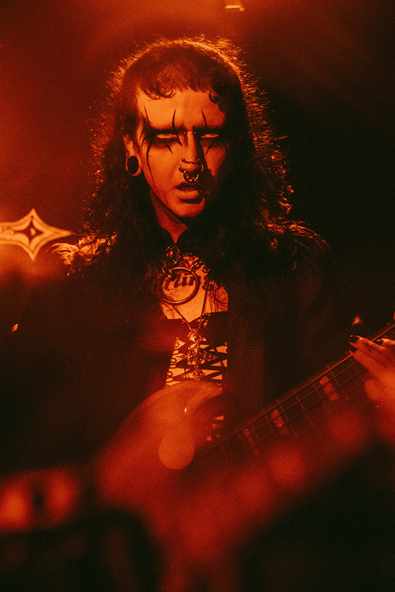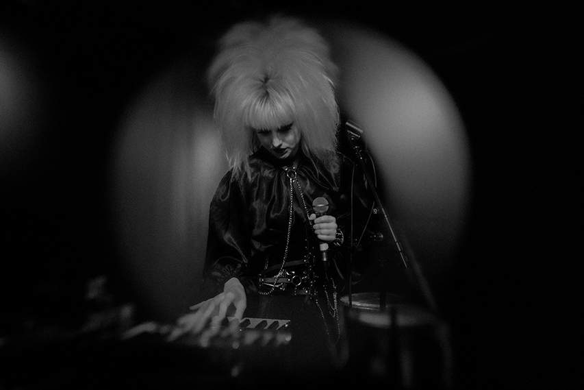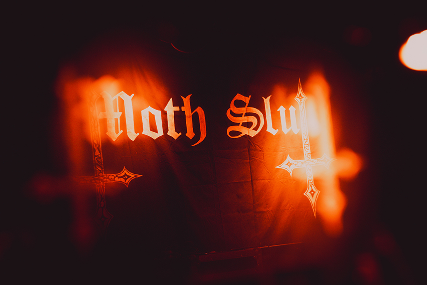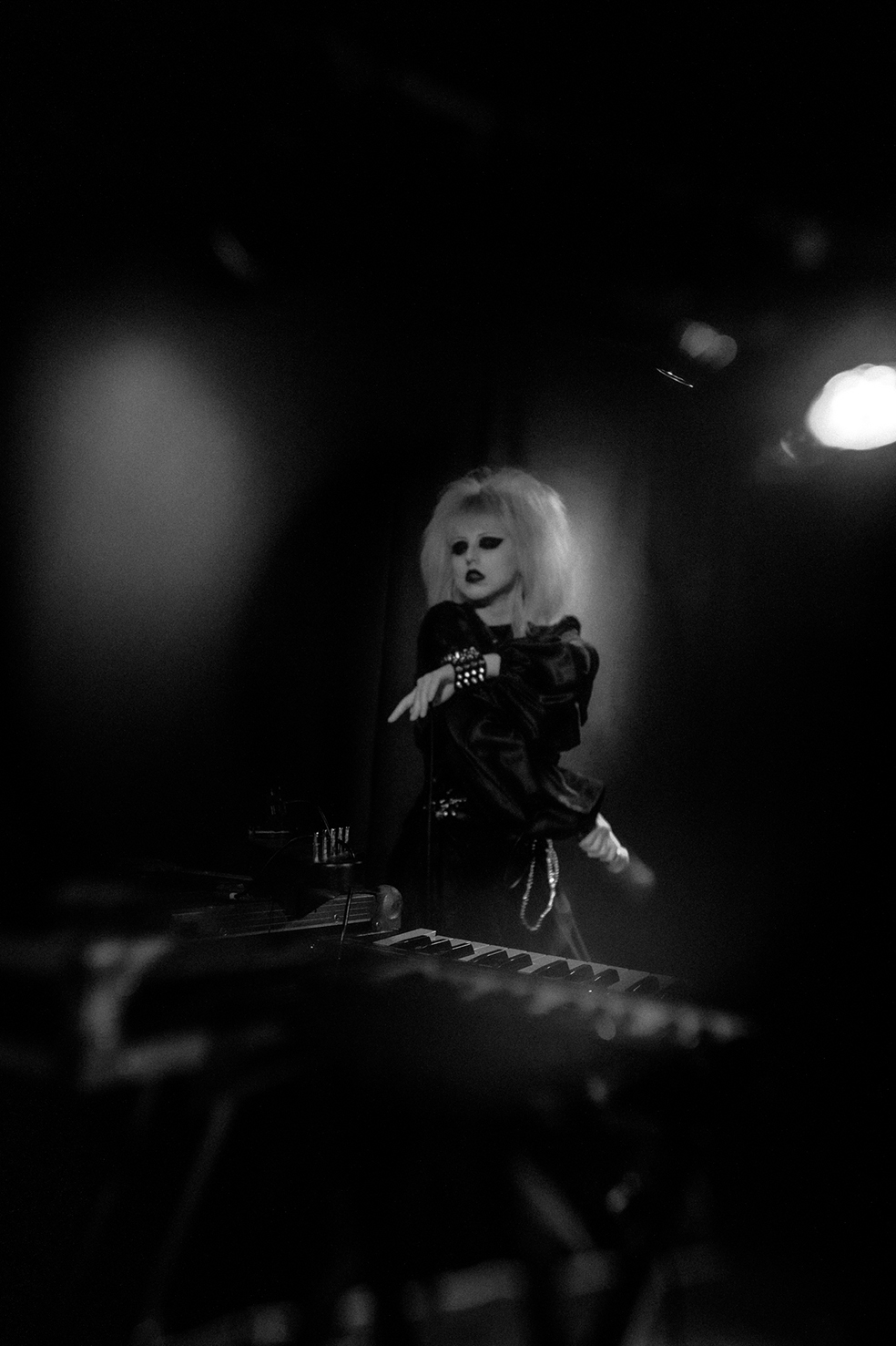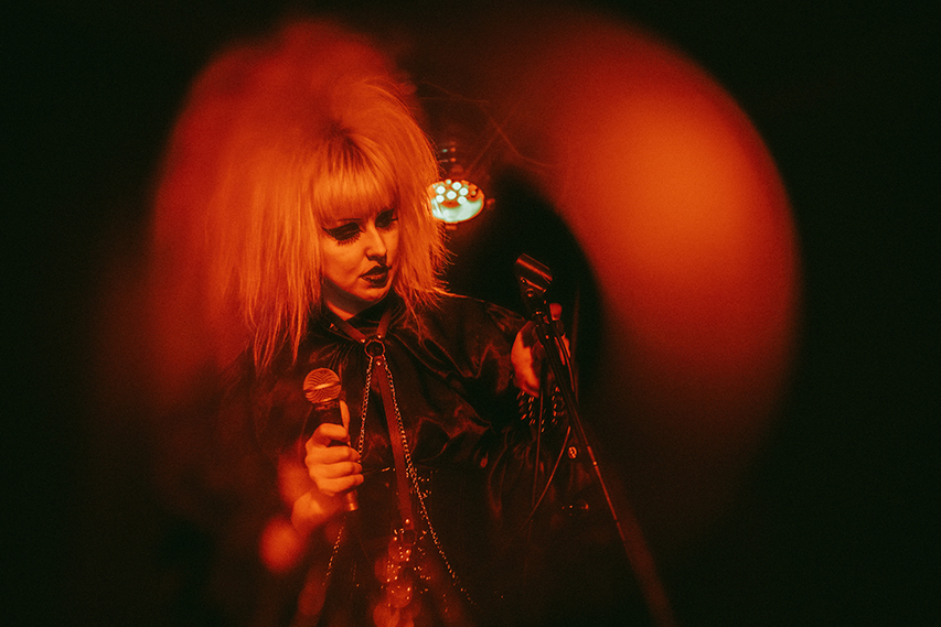 The venue was already alive before the first note rang out. Smoke seemingly curled through the low ceiling, red lights pooled across the walls, and the crowd, majority draped in black lace, leather, and eyeliner, pressed ever closer to the stage. The anticipation of the opening performance crackles like static in the air this evening, and then Moth Slut the Manchester duo appears. Their presence is small but entirely commanding. Armed with vocals and a wall of synth, bass, and distortion, they created a universe of tension and desire.