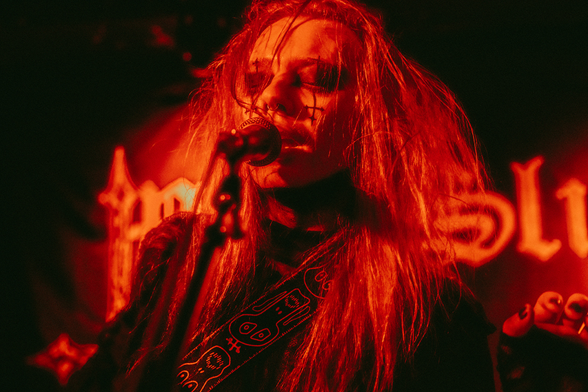 Then came Suzi Sabotage, and the night’s energy shifted. Where Moth Slut seemed to have whispered from the shadows, Suzi vehemently demanded the room’s attention. Clad in black and glowing under the red light, she moved with an icy authority, her voice cutting sharp and mournful through the haze and it seemed like every song from this set was delivered like a magic spell, a mixed potion of heartbreak and power that had the audience caught in a rapture. Suzi spoke very little between tracks, but her presence alone held the crowd in thrall, every note ringing both dark and majestic.