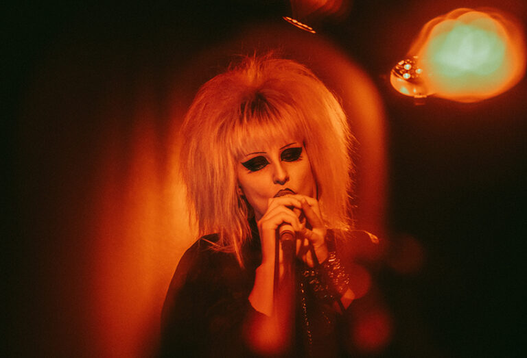 The venue was already alive before the first note rang out. Smoke seemingly curled through the low ceiling, red lights pooled across the walls, and the crowd, majority draped in black lace, leather, and eyeliner, pressed ever closer to the stage. The anticipation of the opening performance crackles like static in the air this evening, and then Moth Slut the Manchester duo appears. Their presence is small but entirely commanding. Armed with vocals and a wall of synth, bass, and distortion, they created a universe of tension and desire.