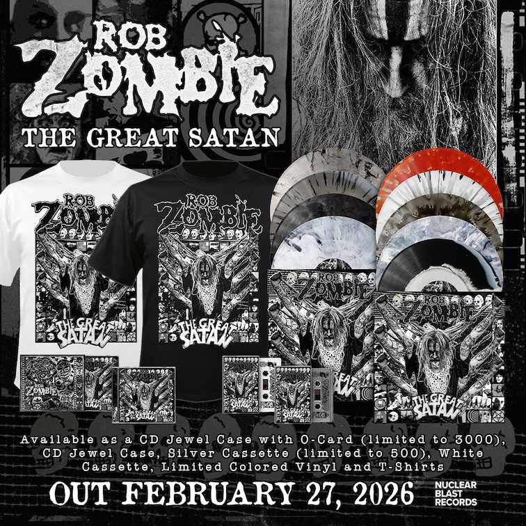 Heavy metal legend, acclaimed filmmaker and pop culture icon ROB ZOMBIE returns for his 8th studio album, The Great Satan, out February 27th from Nuclear Blast Records. Following the success of his Top 10 charting record The Lunar Injection Kool Aid Eclipse Conspiracy (2021), Zombie is back, revisiting his early Hellbilly roots for a slaughterhouse of anthemic punk infused heavy rock/metal.